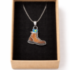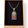 Colgante de La Santina fabricado en acero, con cadena de acero plateada y un acabado resistente y brillante.