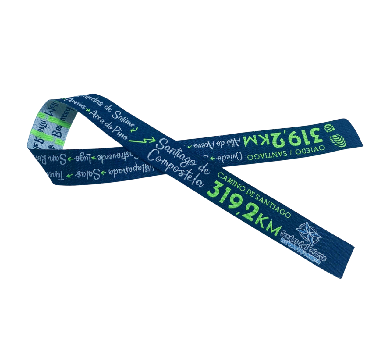 Cinta 319,2 KM en tela bordada de alta calidad en colores flúor.