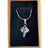 Colgante de con Triskel esmaltada en acero con cadena de acero plateada. Presentada en caja.