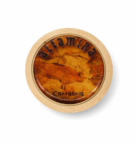 Imán de madera con gota de resina de alta definición y diseño de Cantabria.
