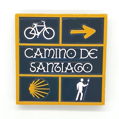 Imán fabricado en cerámica con alta adherencia con diseño de señal del camino de Santiago.