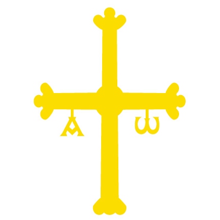Pegatina en vinilo resistente de alta durabilidad y a los efectos climáticos como la lluvia con diseño Cruz de Asturias pamarilla.