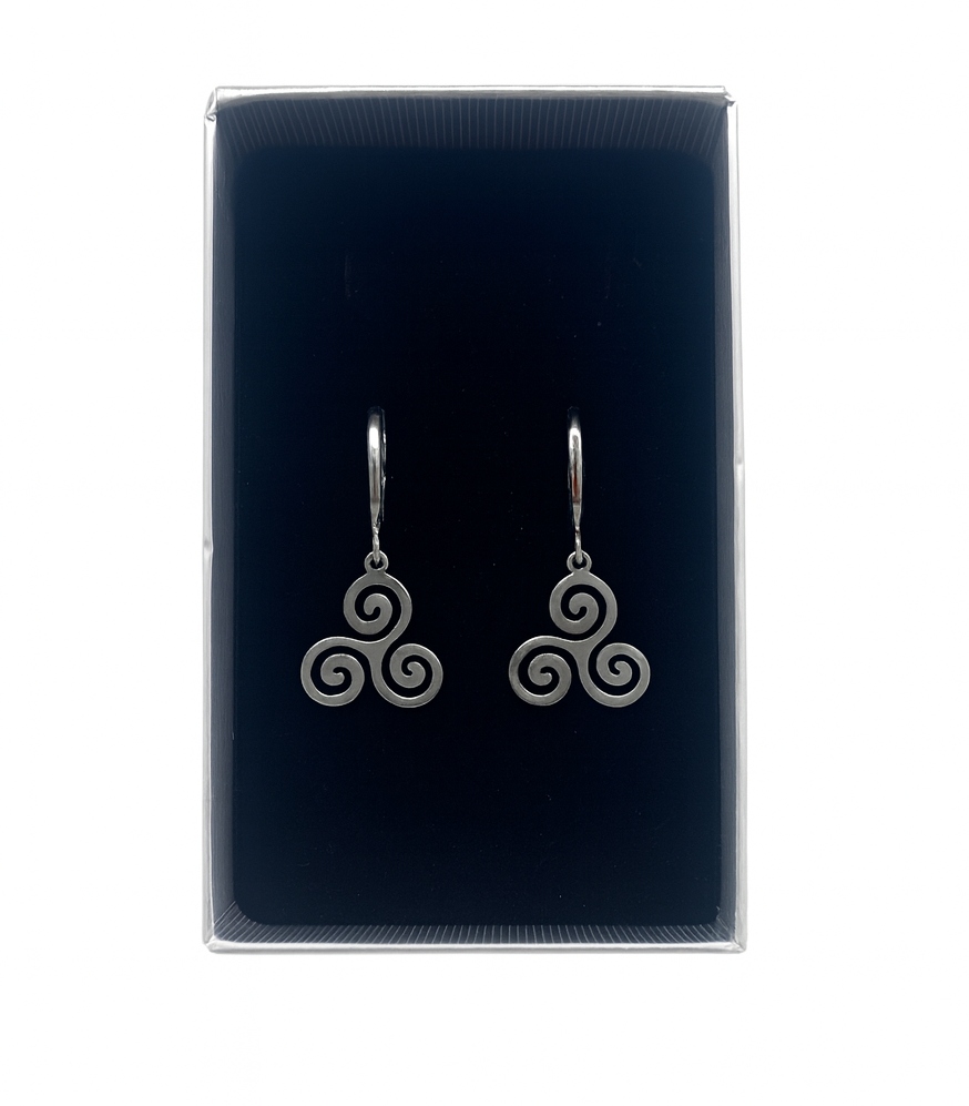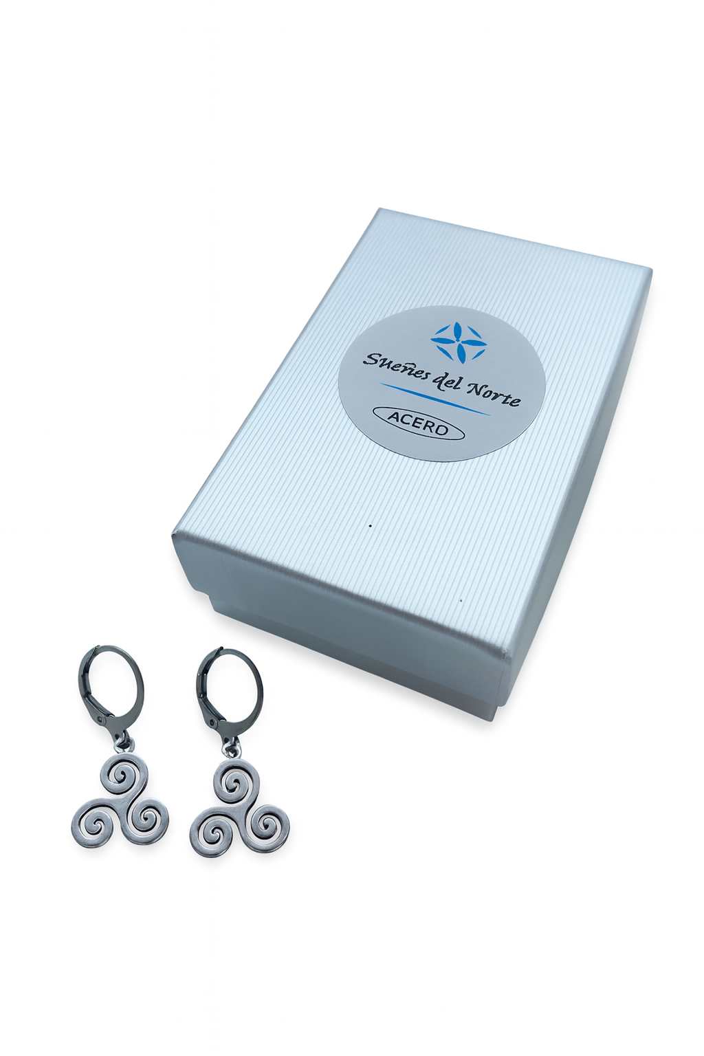 Pendientes de acero inoxidable en color plata con diseño de Triskel.