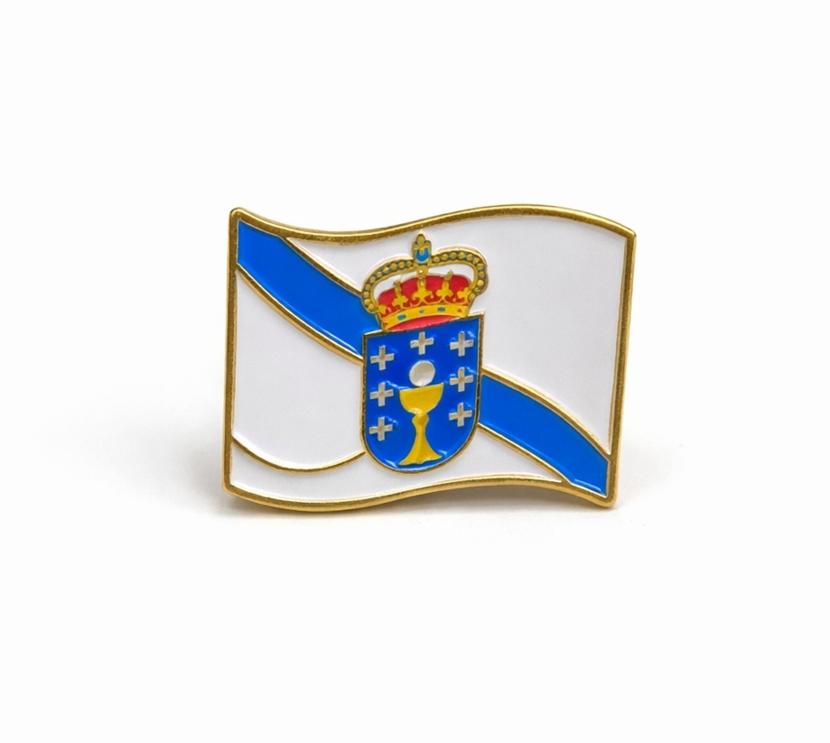 Pin de metal esmaltado con diseño de bandera de Galicia. Alta calidad en imagen, terminación y broche resistente para una sujeción segura.