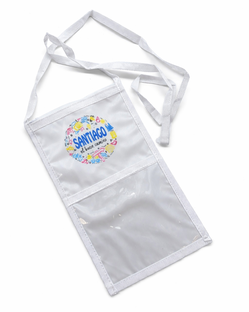 Porta credencial impermeable del Camino. Incluye cremallera resistente y bolsillo extra, con logotipo del Camino. Práctico y funcional.