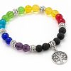 Pulsera fabricada en cristales y piedras, con los 7 colores del chakra  y abalorio mano de fátima. Silicona de alta resistencia.
