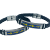 Pulsera en cuero trenzado con cierre y piezas en acero. Diseñado a color permanente.