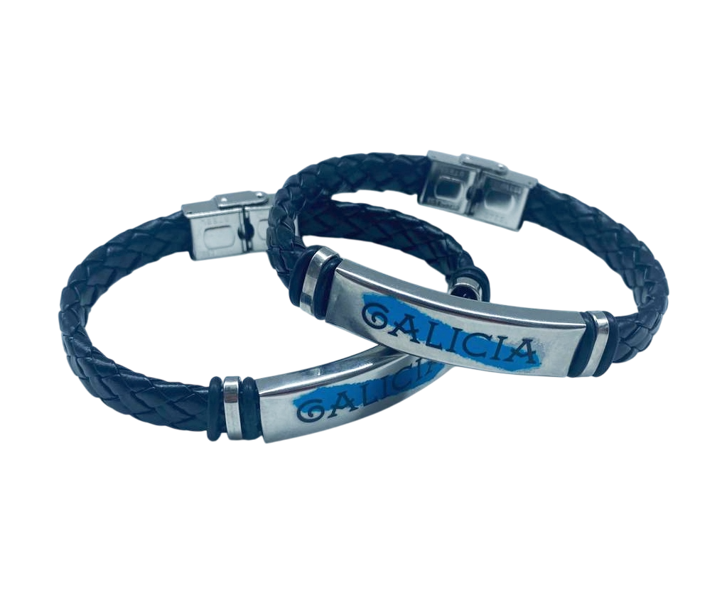 Etiquetas: camino de santiago, cuero trenzado, galicia, pulsera acero del camino, pulsera galicia, pulseras hombre, recuerdo del camino, recuerdos del camino, souvenirs del camino
