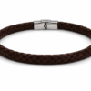 Pulsera fabricada en piel trenzado en marrón caro de 6mm ajustable con broche de acero.