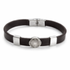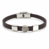 Pulsera fabricada en piel marrón de 6mm ajustable con broche de acero pieza metal Lauburu celta con embellecedores.