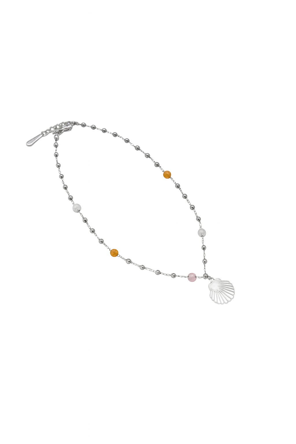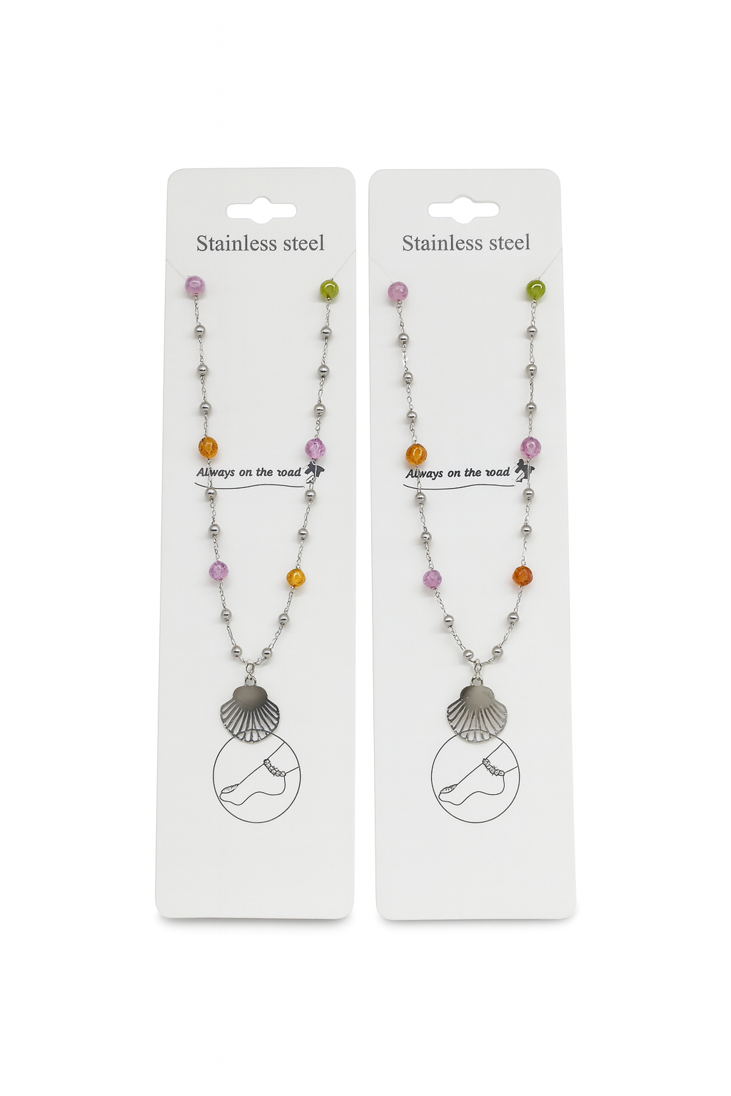 Tobillera fabricada en acero pulido de alta durabilidad con Concha y piedras de colores.
